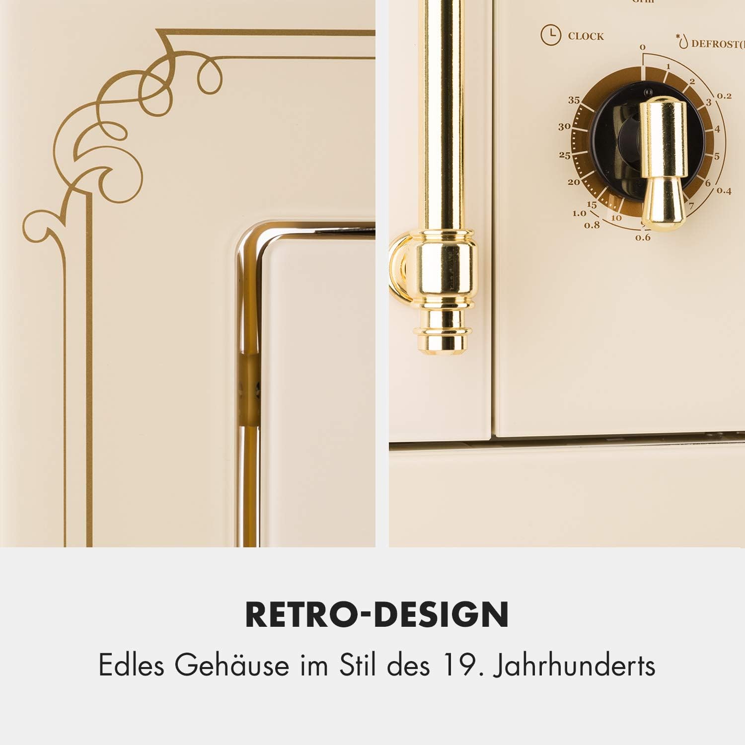 Figuur 2.1: The Klarstein Victoria 20 microwave features a distinctive retro design with elegant detailing.
