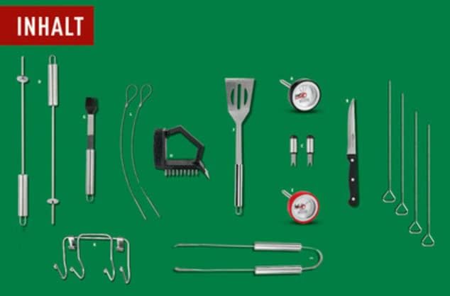 Your Grill Meister 18-Piece BBQ Kit includes the following items: