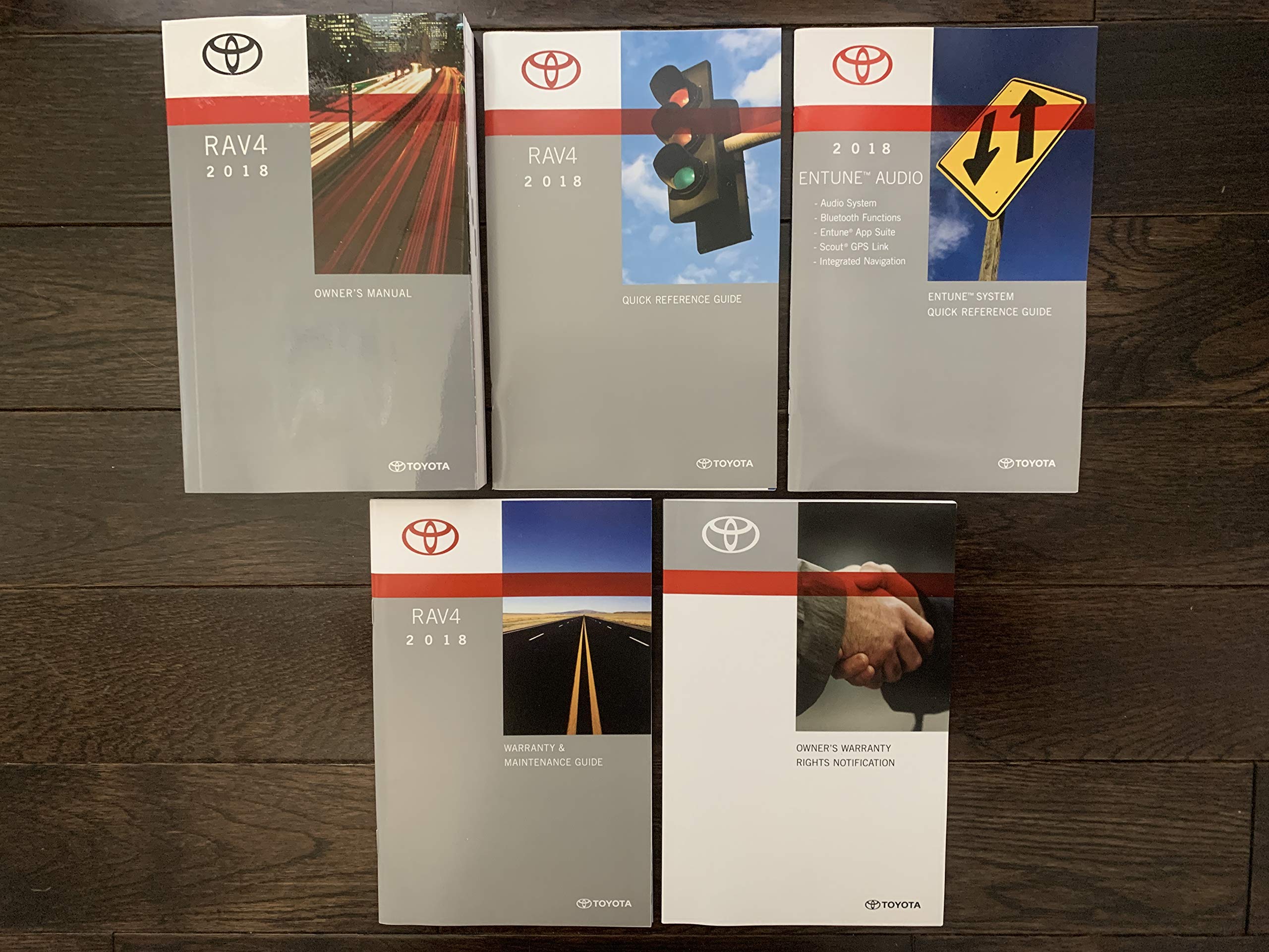 Image: Cover of the 2018 Toyota RAV4 Owners Manual. This image displays the front cover of the comprehensive guide for the vehicle, featuring the Toyota logo and model year.