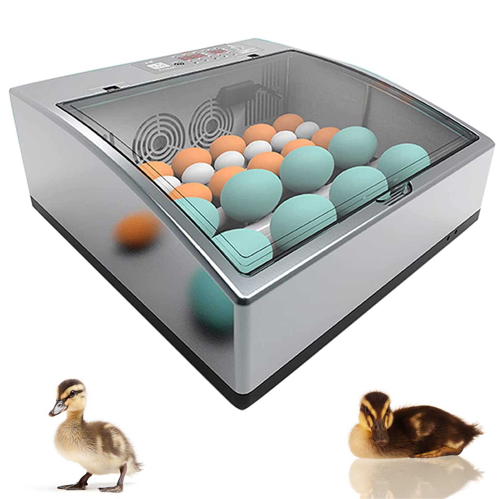 This incubator is suitable for a variety of poultry eggs. The capacity is approximately 36 eggs for standard chicken eggs (single layer model), or up to 60 eggs for the double layer model, with capacity varying for smaller eggs like quail, and fewer for larger eggs like duck or goose.