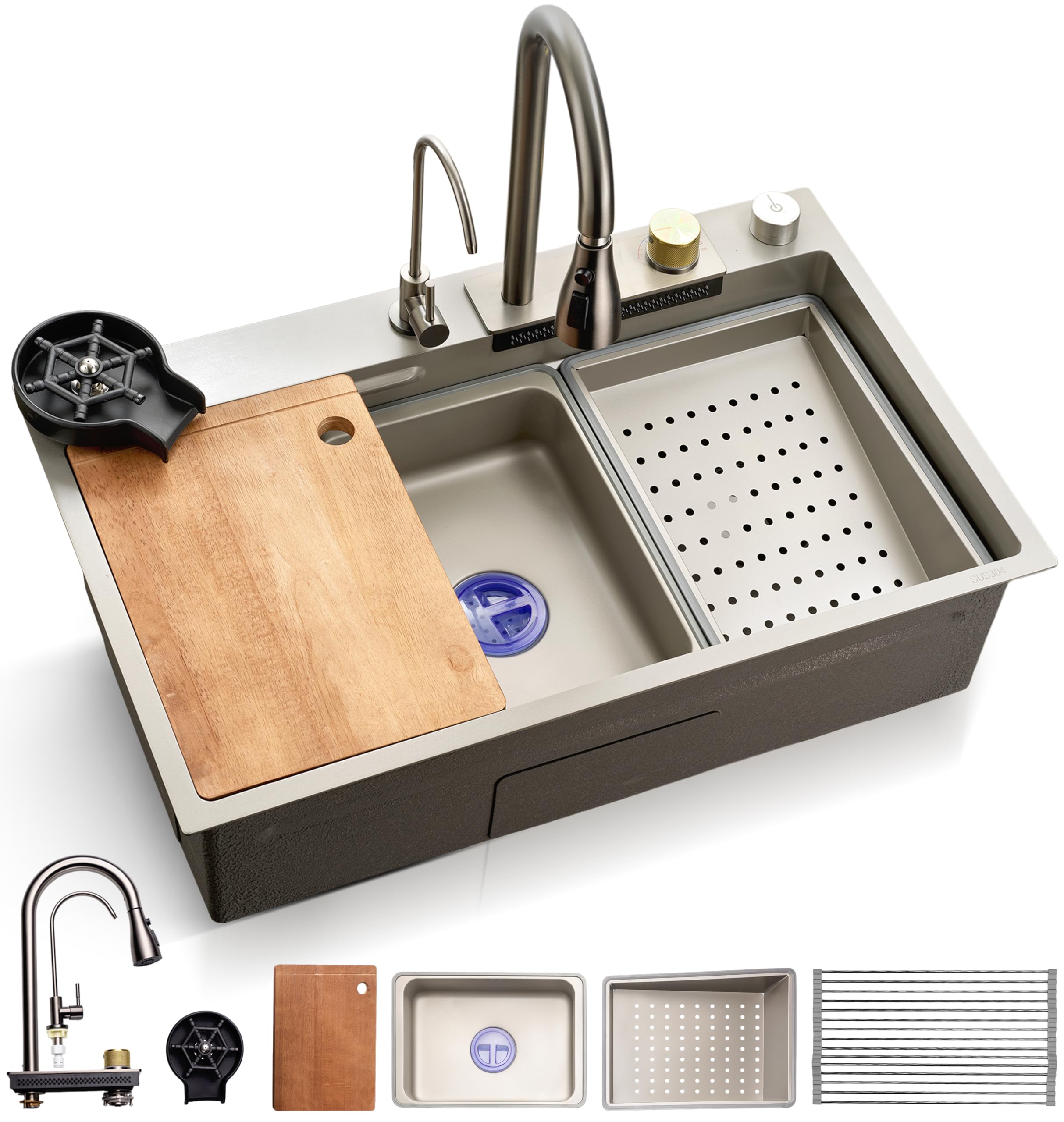 | Materiaal | Stainless Steel (SUS304 for sink, SUS201+PVC for drain rack) |